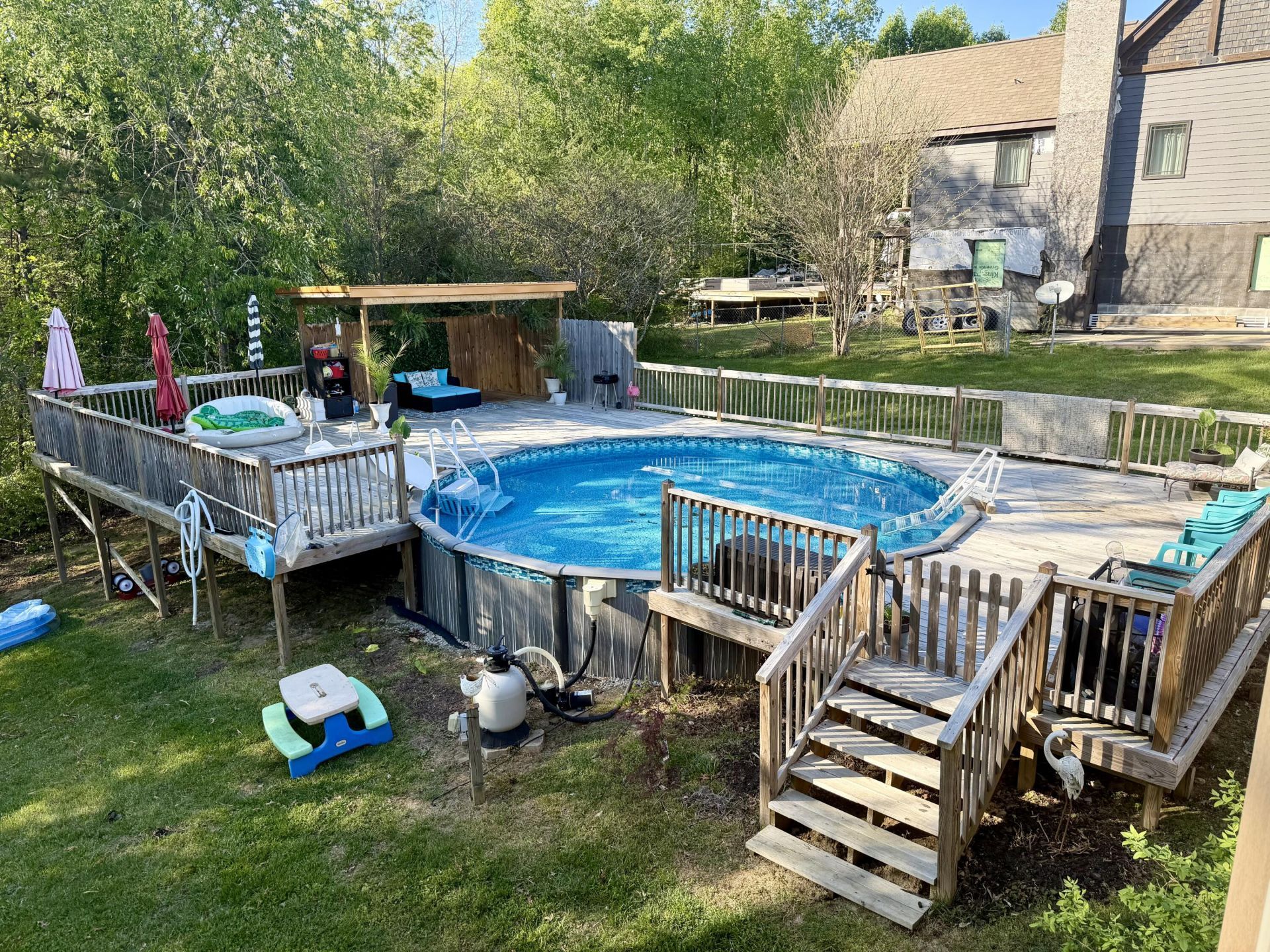 Spacious 3-bedroom, 2-bath home located in the desirable Blossom Ridge Subdivision, situated on three lots totaling approximately 1.5 acres. This well-maintained split foyer home offers a functional layout with the main level featuring a comfortable living room, kitchen, dining area, laundry, and all three bedrooms and two full baths. The kitchen is equipped with updated stainless steel appliances and opens to a covered deck that overlooks the backyard and pool area???perfect for relaxing or entertaining. The lower level features a large family room with walkout access to a covered patio and a fenced-in backyard. Outdoor amenities make this property stand out, including a swimming pool with slide, expansive 1 year built deck, and a covered cabana lounge area poolside. There is also a spacious side yard featuring a large pirate ship play area, along with a two-car garage. Conveniently located in a great subdivision just minutes from Laurel Lake, Interstate 75, and only a short drive to downtown Corbin. This property offers space, comfort, and excellent outdoor living all in one.