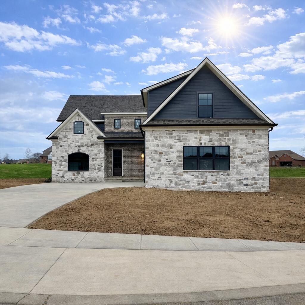 New Construction!! Beautiful Transitional Style Home with Scenic Golf Course Views in Highly Sought After Boones Trace. This home features an Open-Concept Floor Plan with Main Floor Living & Large Kitchen with Plenty of Room for Entertaining. The First Floor features a Primary Suite, Formal Dining Room, Half Bath, Laundry Room, Stone Fireplace, Large Gourmet Kitchen, 12ft glass slider & Covered Front & Back Porches. 2nd Floor features 3 Large Bedrooms with walk-in closets & 2 Full Baths. Finishes include Black Windows, Quartz & Marble Countertops, Custom Built Cabinetry, Stainless Steel Appliances, Wide-plank Hardwood Flooring. The Full Unfinished Basement houses a Utility Garage, 2nd 12ft Slider, & is Roughed-In for Full Bath. Home is HERS rated. This home is in the New Development within Boones Trace & Does not show up on GPS. Use 617 Imperial Lakes for GPS directions. Please follow listed directions. Some photos contain AI generated staging. Agent is Affiliated with Builder.