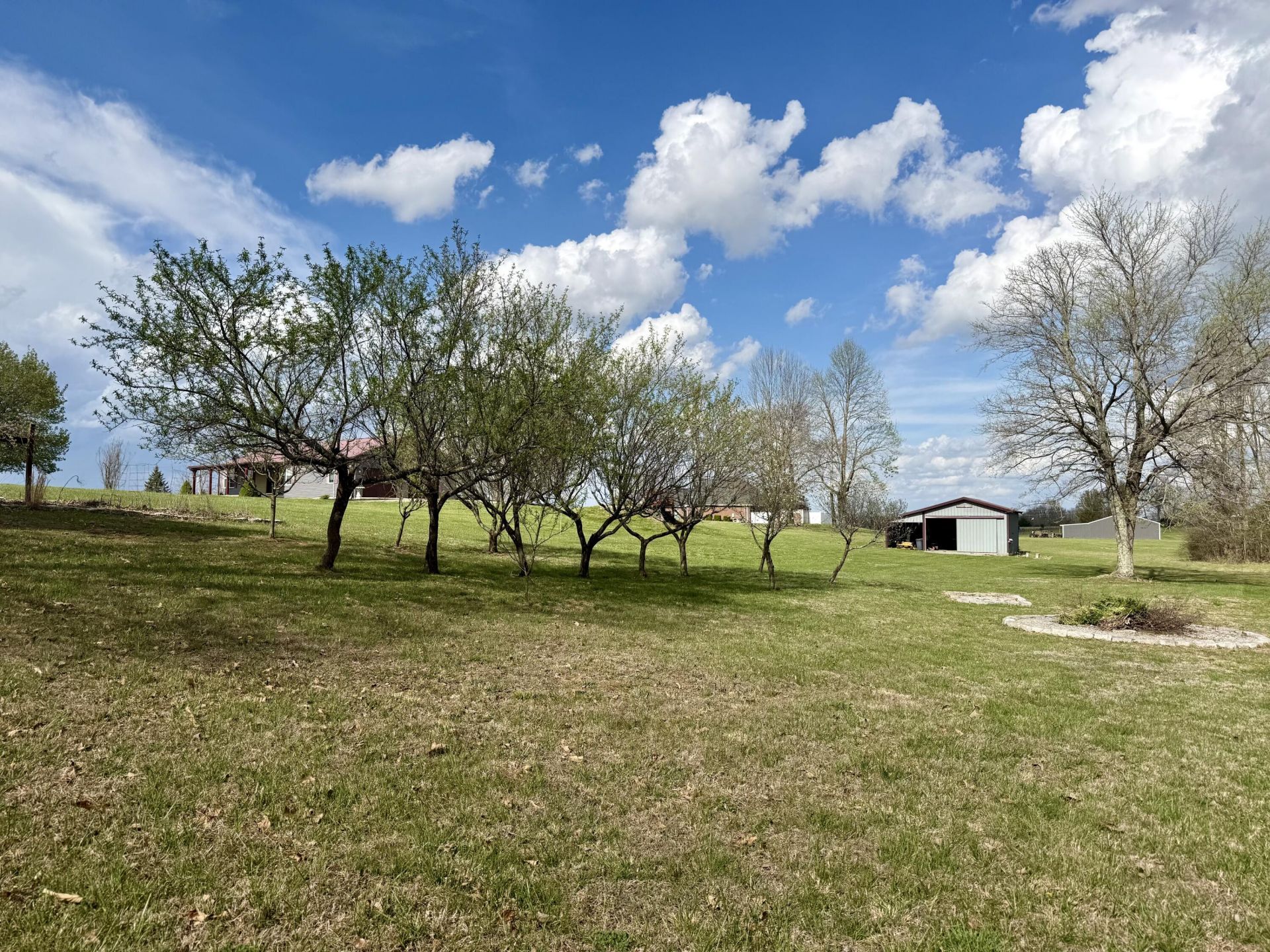 Welcome to your own slice of country paradise. This 3 bedroom, 2 bath home is perfectly set on 2.45 acres of peaceful, picturesque land. Perfectly blending country charm with everyday convenience. Step inside to a spacious, open-concept kitchen and living room that's perfect for everyday living and entertaining. The kitchen comes fully equipped with all appliances, butcher block cabinet and the kitchen table making it truly move in ready. The home also features good sized bedrooms with generous closet space, offering plenty of space for family, guest, or a home office. You'll also love the laundry room, complete with a sink and cabinets for added storage. The thoughtful layout keeps everything comfortable and functional. Outside, the level to gently rolling yard is filled with gorgeous trees, creating a serene and private setting. There's plenty of space for gardening , outdoor activities, bird watching, or enjoying morning coffee on the front porch. The charming little playhouse adds character and can be used as a quiet retreat, hobby space, or creative nook. A standout feature is the large detached building, offering endless possibilities. Whether you envision a workshop, storage for equipment and vehicles ,this versatile structure is built to accommodate a variety of needs. Its spacious interior and durable construction make it a practical and valuable addition to the property, giving you room to pursue hobbies, store belongings, or work on projects right at home. The home also includes an attached 2-car garage for convenience, an EV charger- perfect for electric vehicle owners and a storm shelter designed for safety and peace of mind. Included with the home: - Zero-turn lawn mower - Generator - All kitchen appliances - Washer & Dryer - Flat Screen TV - Kitchen Table - Butcher Block Cabinet